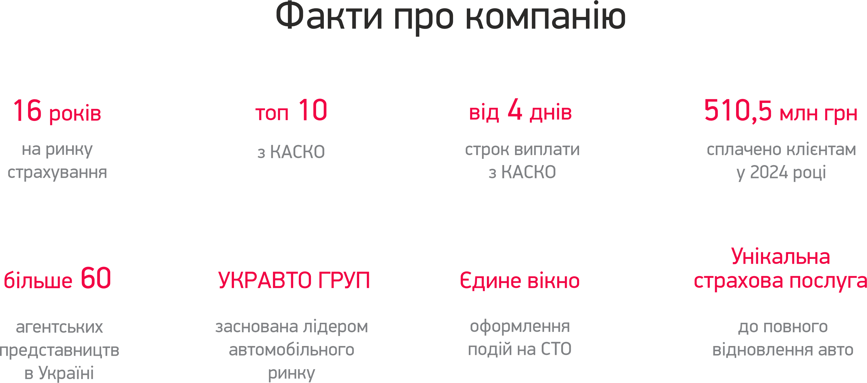 Компанія понад 7 років поспіль міцно утримує лідерські позиції в ТОП-10 рейтингу впливового на страховому ринку України журналу Insurance TOP за КАСКО.