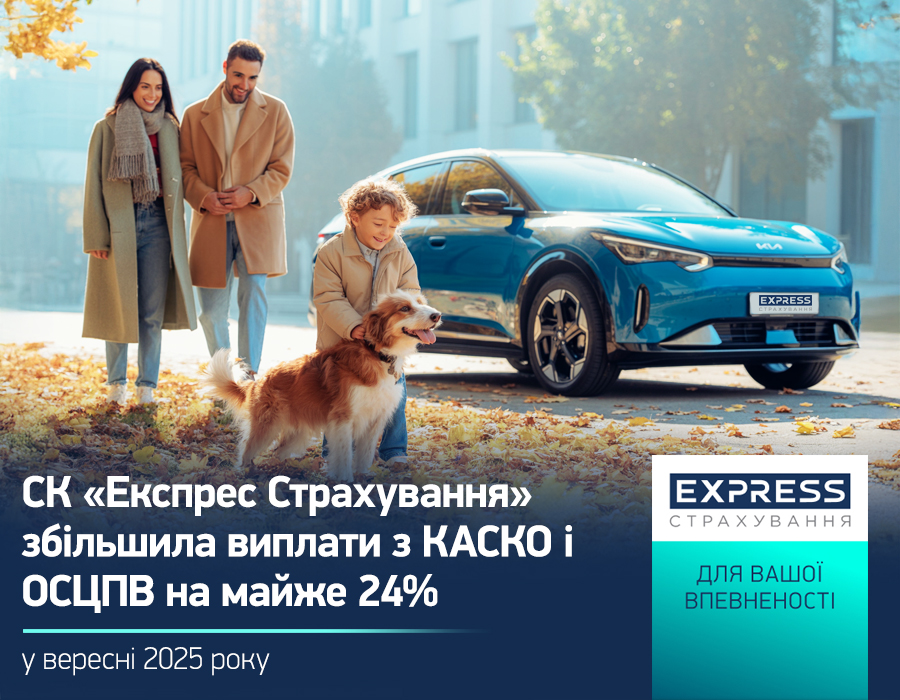 СК «Експрес Страхування» у вересні 2025 року збільшила виплати з КАСКО і ОСЦПВ на майже 24%, до 53,8 млн грн