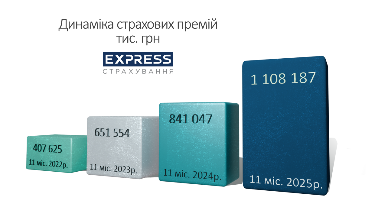«Експрес Страхування» завершила 11 місяців року з преміями, що сягнули 1,1 млрд грн